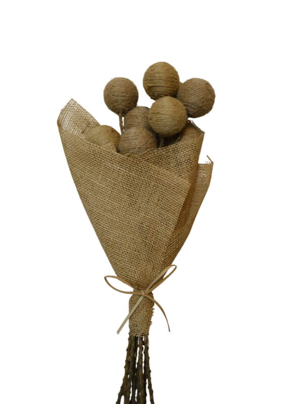 Jute Rope Ball features soft, jute twine in a natural tone, designed to be a natural fiber accent piece. These real-touch faux jute rope balls are sold by the box and trusted by florists, wedding designers, and event professionals for long-lasting arrangements.