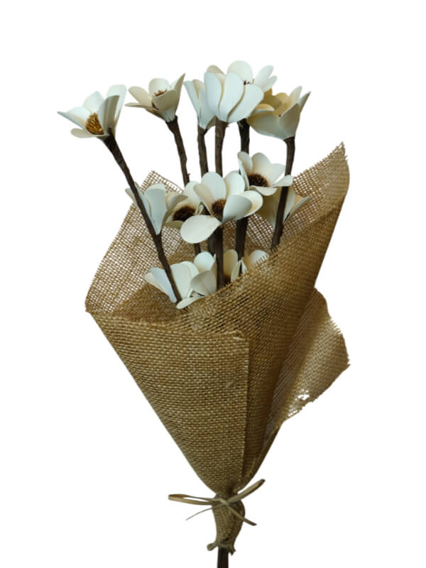 Palm Deco Flower Stick features decorative stems, in a natural tone, made from palm materials styled to resemble a flowering branch. These real-touch faux palm deco flower sticks are sold by the box and trusted by florists, wedding designers, and event professionals for long-lasting arrangements.