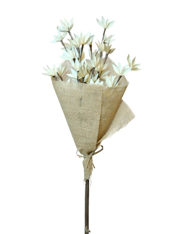Palm Peacock Branch features decorative stems, in a natural tone, made from palm materials with the layered silhouette of a lily-style bloom. These real-touch faux palm peacock branches are sold by the box and trusted by florists, wedding designers, and event professionals for long-lasting arrangements.