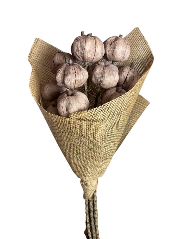 Pumpkin feature replicated decorative versions of pumpkins, in an old pink tone, and unlike real pumpkins, they can be reused season after season and maintain consistent color and ship for retail-ready centerpieces and fall bouquets. These real-touch faux pumpkins are sold by the box and trusted by florists, wedding designers, and event professionals for long-lasting arrangements.