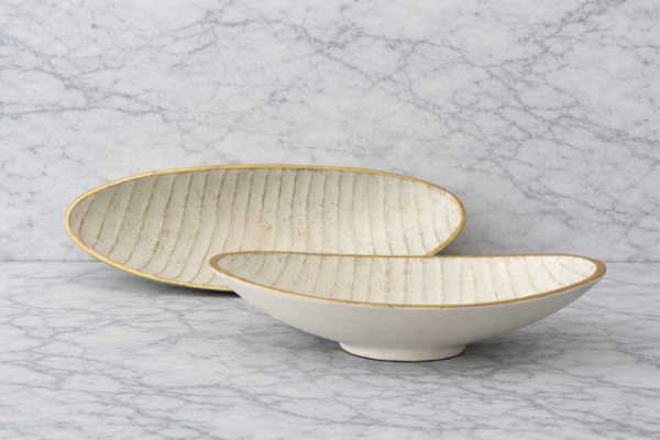 Designed in a calming white finish accented with gold detailing, these trays bring sophistication to coffee tables, consoles, dining tables, and entryway styling. Their shallow bowl form allows them to function beautifully as decorative trays, tabletop bowls, or sculptural centerpieces.